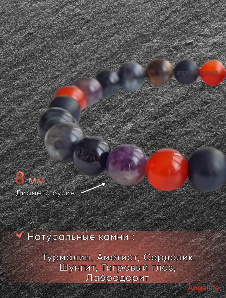 - Камни: Турмалин, Аметист, Сердолик, Шунгит, Тигровый глаз, Лабрадорит